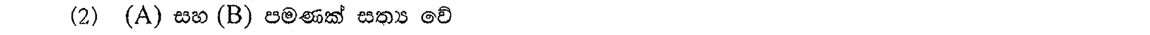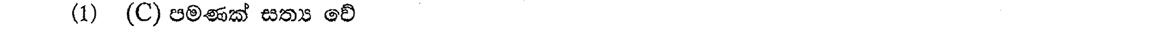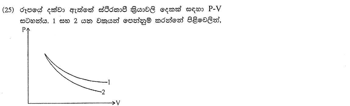 1 සිට 50 තෙක් වූ එක් එක් ප්රශ්නය ස්ඳහා දී ඇති (1), (2), (3), (4), (5) යන පිළිතුරු වලින් නිවැරදි හෝ ඉතාමත් ගැලපෙන හෝ පිළිතුර තෝරාගෙන, එය මත Click කරන්න.