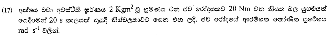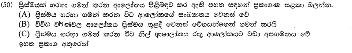 මෙම ප්රශ්න පත්රයේ ප්රශ්න 50 ක් අඩන්ගු වේ.